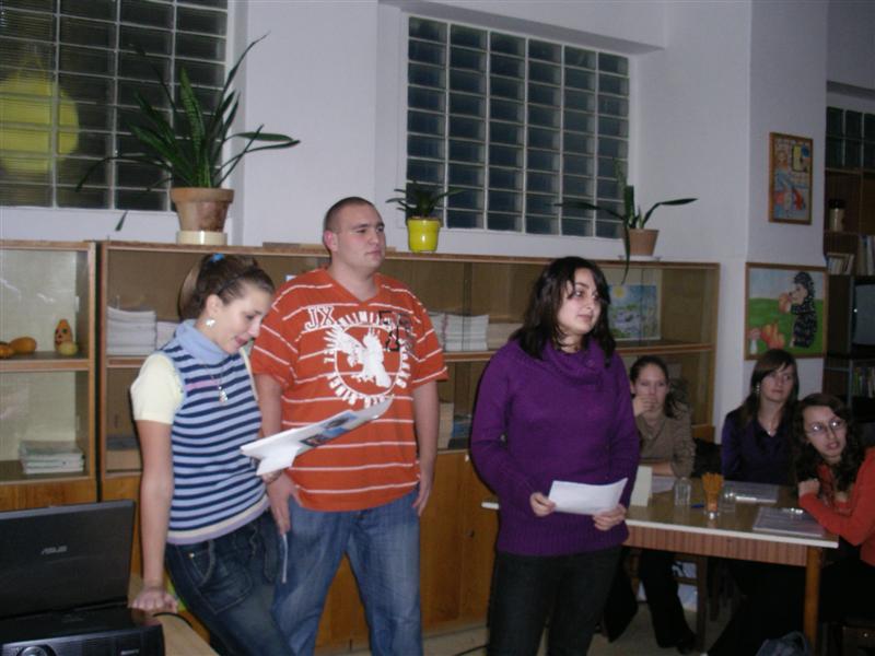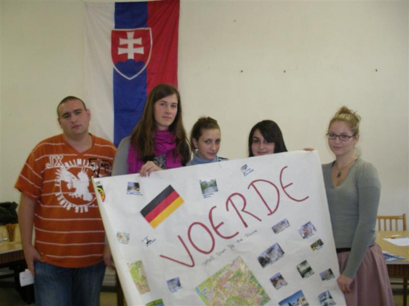 Stretli sa tu tri družstvá handlovských stredných škôl, aby ukázali svoju kreativitu, vedomosti o EU a jazykovú zdatnosť. Našu školu reprezentovalo trojčlenné družstvo v zložení Natália Schniererová, Zuzana Pogádlová a Igor Roško- študenti 2.A. Úlohou v prvom kole - bolo v anglickom alebo nemeckom jazyku prezentovať ľubovoľnú krajinu EU a v slovenčine porozprávať o živote mladých ľudí tejto krajiny. Naši žiaci predstavili Nemecko a mesto Voerde v anglickom jazyku a do rozprávania o živote mládeže zapojili aj nášho hosťa Edu Orhan. V druhom kole zvládli vedomostný test o EÚ a v treťom hádali, ktorej krajine patrí ukázaná štátna vlajka, čo bolo dosť náročné.